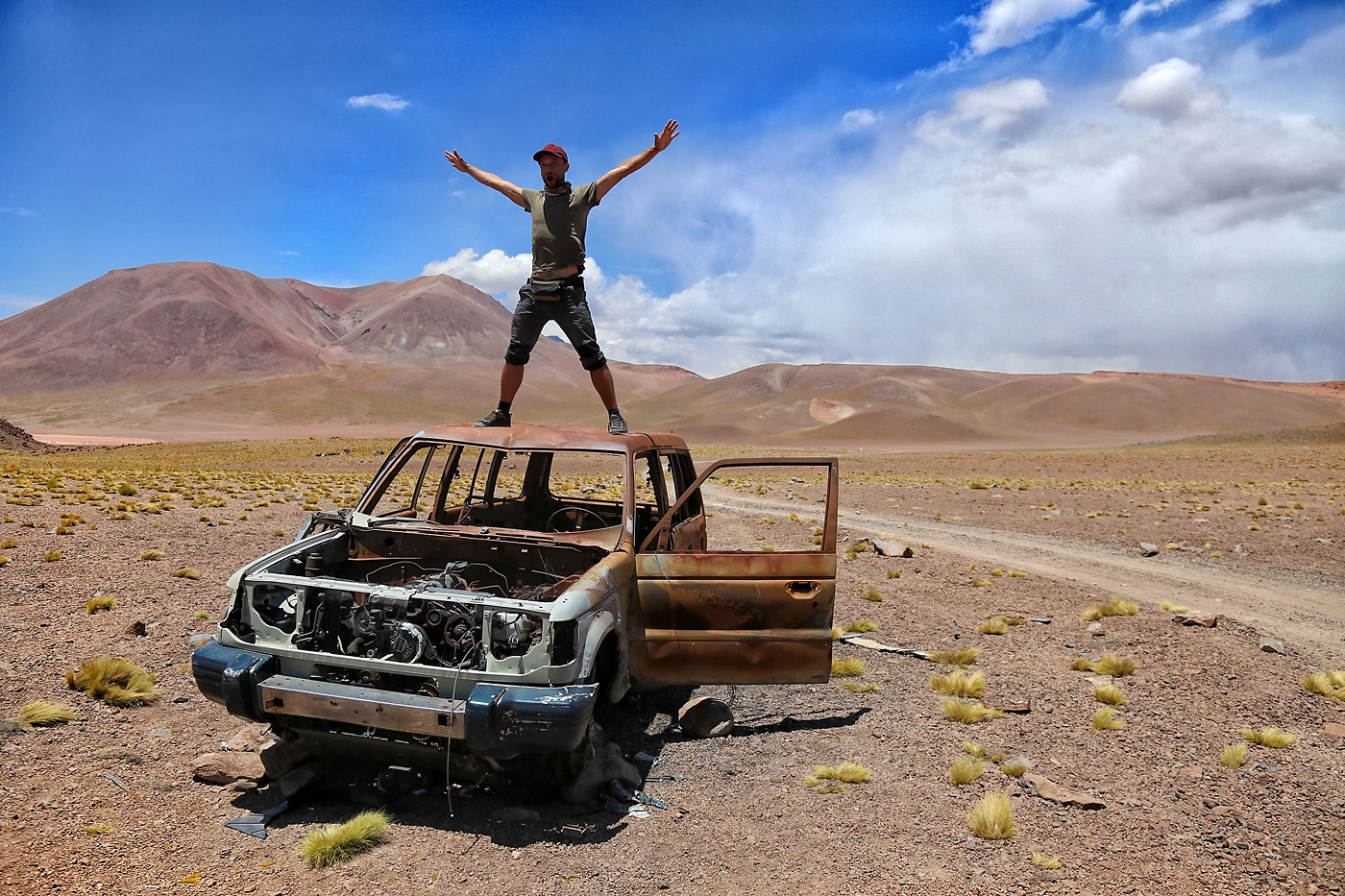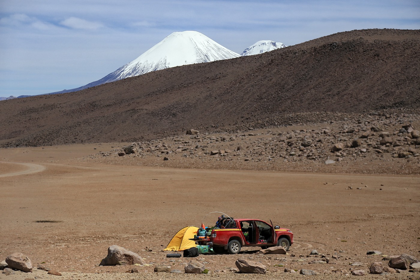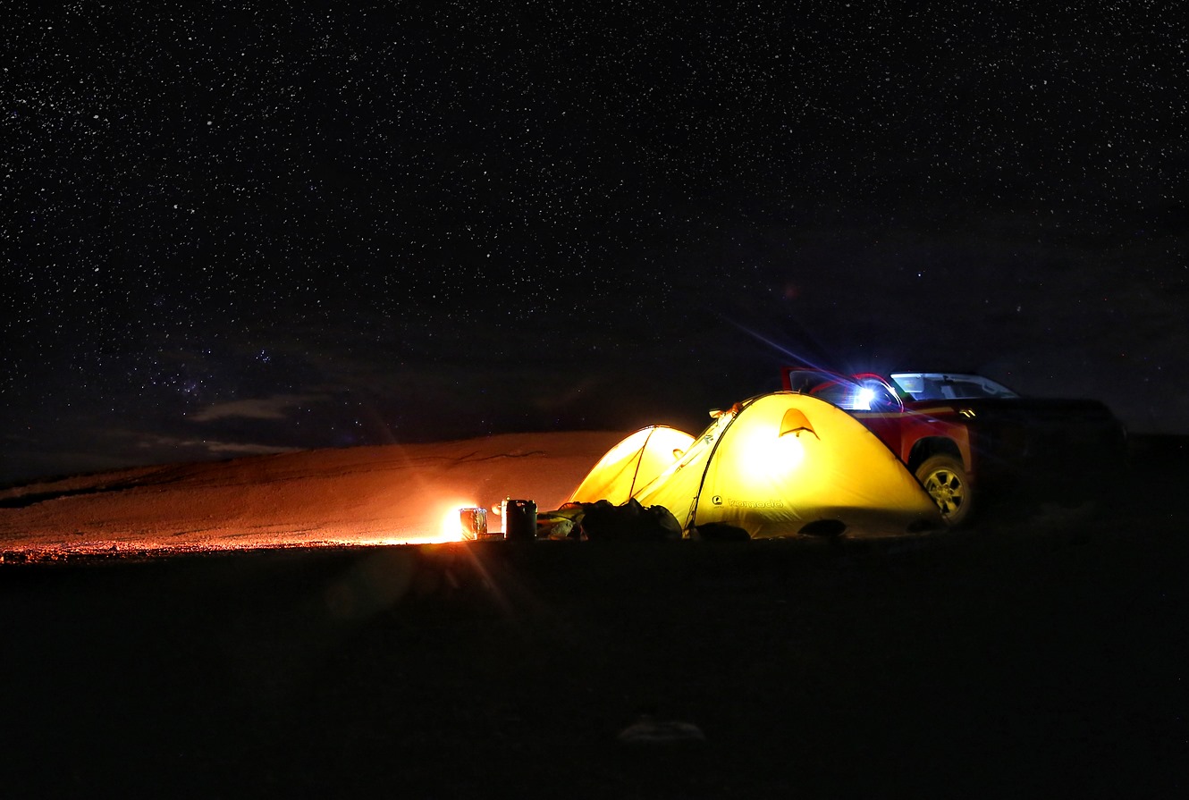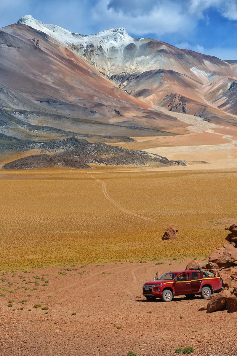 3 osoby, 24dni, 4000 przejechanych kilometrów, 3 pięciotysięczniki, noclegi tam gdzie chcieliśmy, w namiotach w miejscach tak pięknych i magicznych, że sam w to nie wierzę, na potężnych wysokościach nawet powyżej 5000m n.p.m przy tak rozgwieżdżonym niebie, że szczęka opada, z widokami na ośnieżone wulkany, z dala od cywilizacji, od ludzi, bez zasięgu, bez możliwości jakiegokolwiek kontaktu, myjąc się i piorąc w strumieniach, zdani tylko i wyłącznie na siebie nie wiedząc co przyniesie kolejny dzień i „modląc się” żeby auto przetrwało. Tego właśnie chciałem, kontaktu z prawdziwie dziką przyrodą gdzieś na końcu świata, do czasu gdy dopadła mnie choroba wysokościowa i obrzęk łba! „Ciekawe doświadczenie” zdychać w sylwestra na wysokości 4500m n.p.m wśród kości Wikuni gdzieś na pustkowiu, 14000km od domu, strach, lęki, początek był ciekawy 🙂