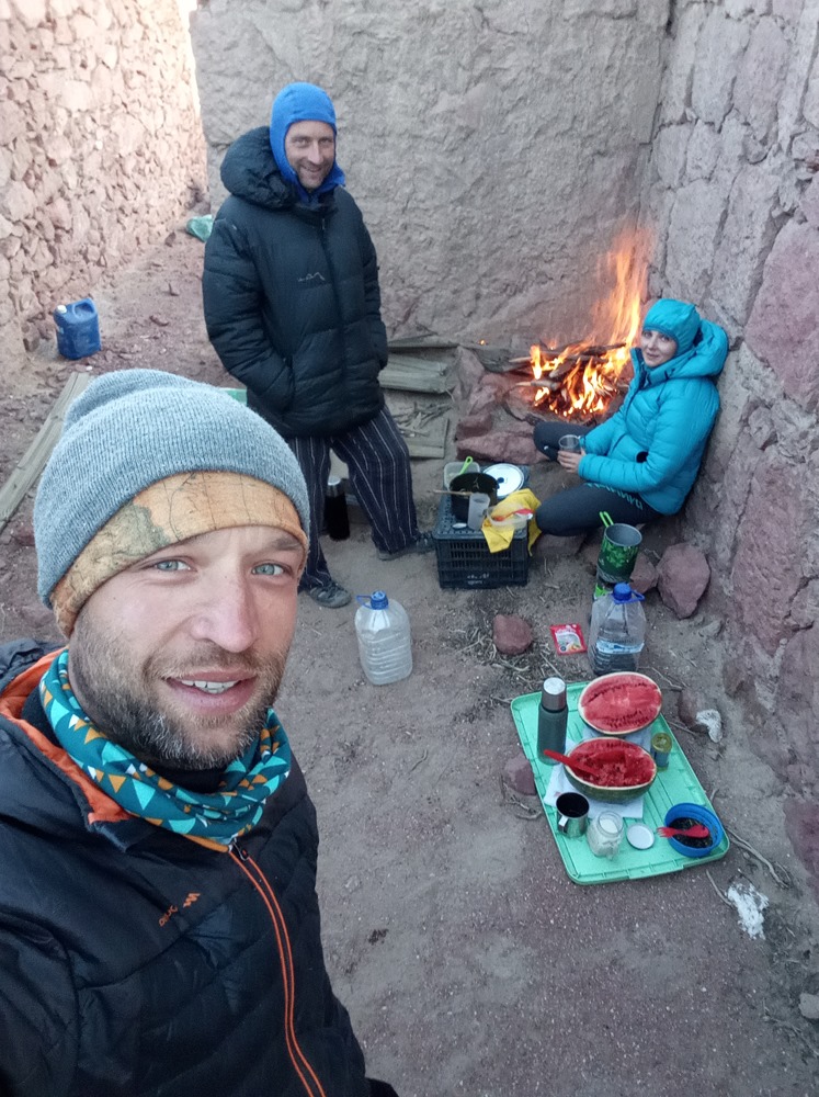 Poruszanie się na wysokościach powyżej 5000m to dopiero zabawa, Przecież ja jestem wytrenowany myślałem…”pobiegam sobie, poćwiczę”…🙂 każdy krok to wyzwanie i walka o oddech, tętno w spoczynku w PL 40 a tam wysoko 100 uderzeń leżąc 🙂